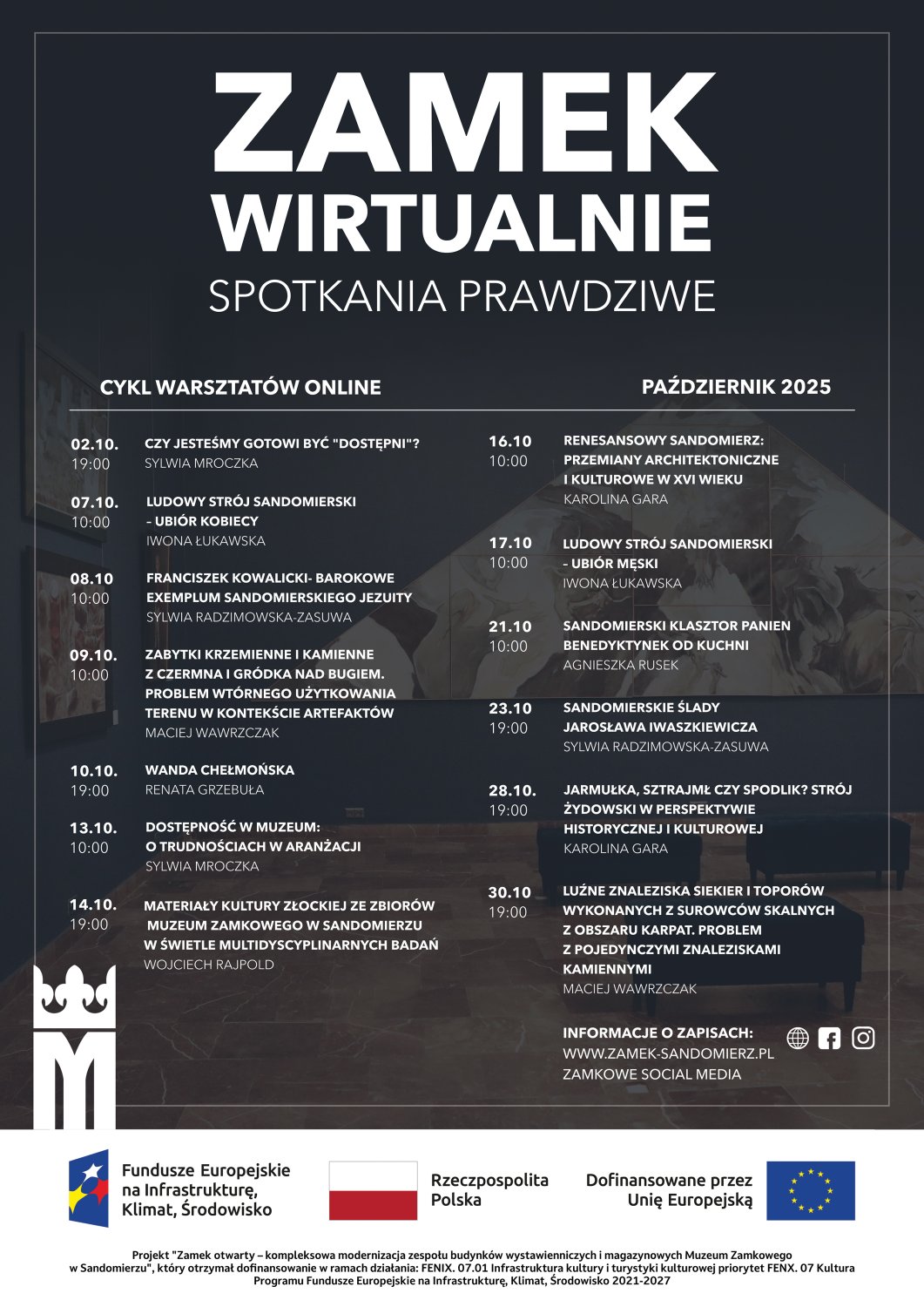 Wydarzenia organizowane w ramach projektu „Zamek otwarty – kompleksowa modernizacja zespołu budynków wystawienniczych i magazynowych Muzeum Zamkowego w Sandomierzu”, który otrzymał dofinansowanie w ramach działania: FENX. 07.01 Infrastruktura kultury i turystyki kulturowej priorytet FENX. 07 Kultura Programu Fundusze Europejskie na Infrastrukturę, Klimat, Środowisko 2021-2027. FORMULARZ ZGŁOSZENIOWY – PAŹDZIERNIK 2025