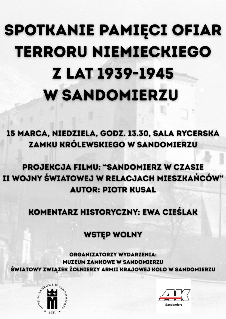 Muzeum Zamkowe w Sandomierzu oraz Światowy Związek Żołnierzy Armii Krajowej Koło w Sandomierzu zapraszają w dniu 15 marca (niedziela), o godzinie 13:30 do Zamku Królewskiego.