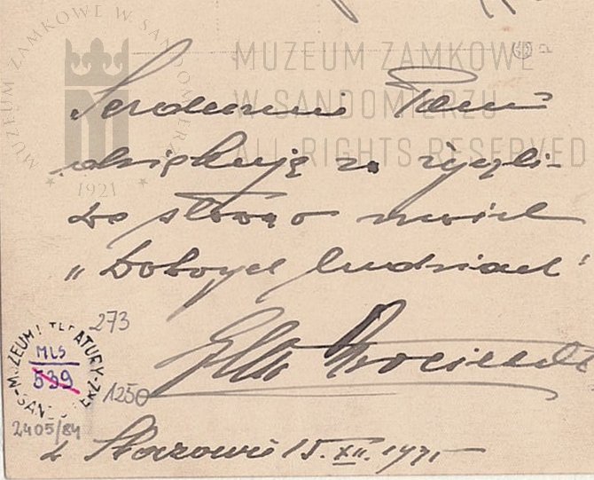 Oto cała treść przesłanych wyrazów wdzięczności: „Serdecznie Panu dziękuję za życzliwe słowa o moich „Dobrych ludziach” w Skoczowie 15.XII.1935″